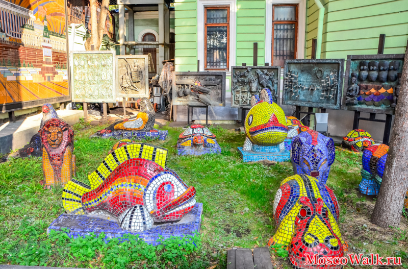 В качестве примера для вдохновения мы взяли работы известного скульптора-мозаичиста Марко Бравура. Двенадцать лет своей жизни он провел в городе Таруса (Калужской области) и создал там уникальное мозаичное панно на Доме Литераторов и 60 скульптур, которые остались на память жителям города Таруса. В Санкт-Петербурге «Мозаичный дворик» – это авторский проект, созданный по системе Владимира Лубенко. А также нас вдохновили работы Антонио Гауди и других менее известных итальянских мастеров.