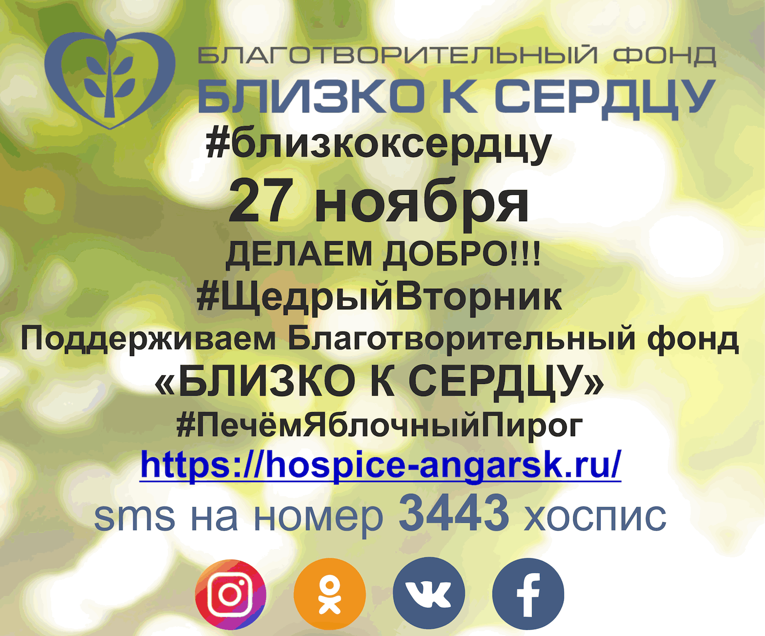 Так же любой желающий может испечь пирог дома, скушать его вместе с родными или друзьями и отправить нам пожертвование на короткий номер, или QR-код, сфотографироваться и выложить себя в соцсетях с Хэштегом.