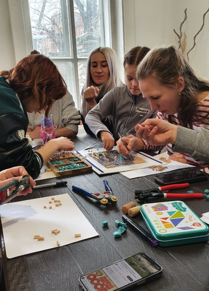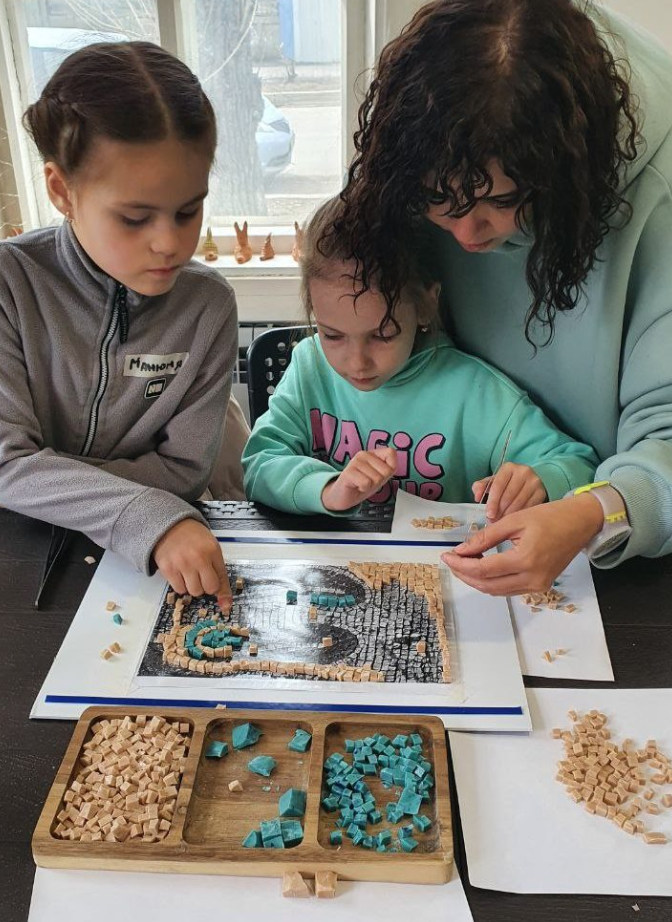 Помимо этого, в творческом пространстве БФ «Близко к сердцу» регулярно проходят мастер-классы по мозаике для детей и взрослых. В числе их участников — дети, которые путешествует с проектом президентской платформы «Россия — страна возможностей» «Больше, чем путешествие». За время выставки «Путь мозаики» в Иркутске команда фонда приняла такие группы трижды.