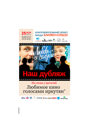 Именно такой формат "Наш дубляж" предлагает иркутянам 25 мая и ангарчанам 28 мая к просмотру благотворительный фонд "Близко к сердцу". Этот яркий, эксклюзивный благотворительный проект станет первым в череде фандрайзинговой стратегии Фонда, направленной на сбор средств для строительства хосписа в Иркутской области.